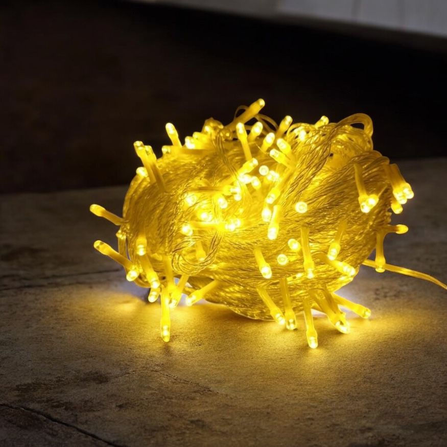 Uzatmalı - 100 Ledli Fişli Led Işık – 8 Metre Günışığı (Sarı) Dekor Lambası